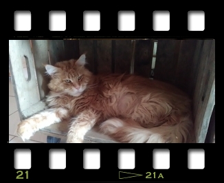 Simba, le maine coon est un mâle de 2012, très calme et posé, un parfait chat d’intérieur …de 9 kg ;-)